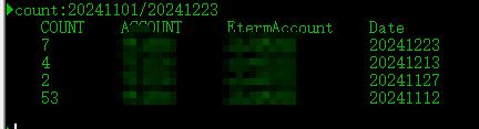 在eterm客户端发送count指令,可查询一段时间内该账号每天的指令量。