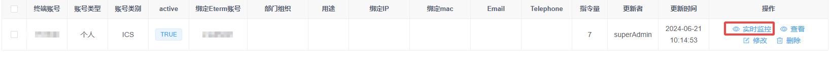 终端账号管理页面点击实时监控,便可实时查看该账号正在进行的交互操作。